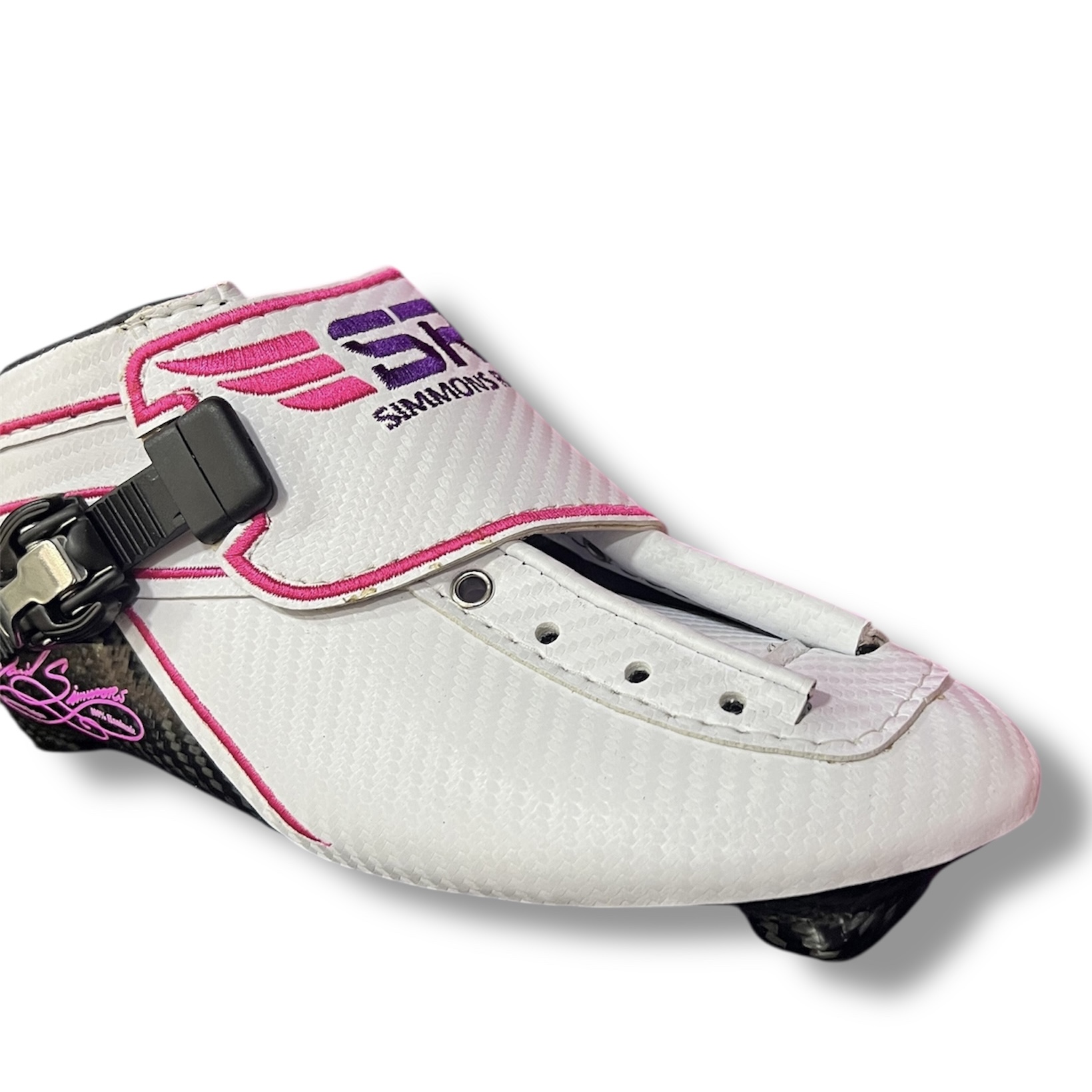 La bota Simmons Rana especial fue creada debido a un gran interés en todo el mundo que se recibió de nuestro diseño de botas personalizadas, y los patinadores de todo el mundo exigían lo mismo en nuestras botas de serie. Estas botas combinan con todos nuestros estándares de gama alta como nuestras otras botas de carreras de gama alta con el aspecto deseado por nuestros seguidores de todo el mundo. Estas están disponibles solo por tiempo limitado