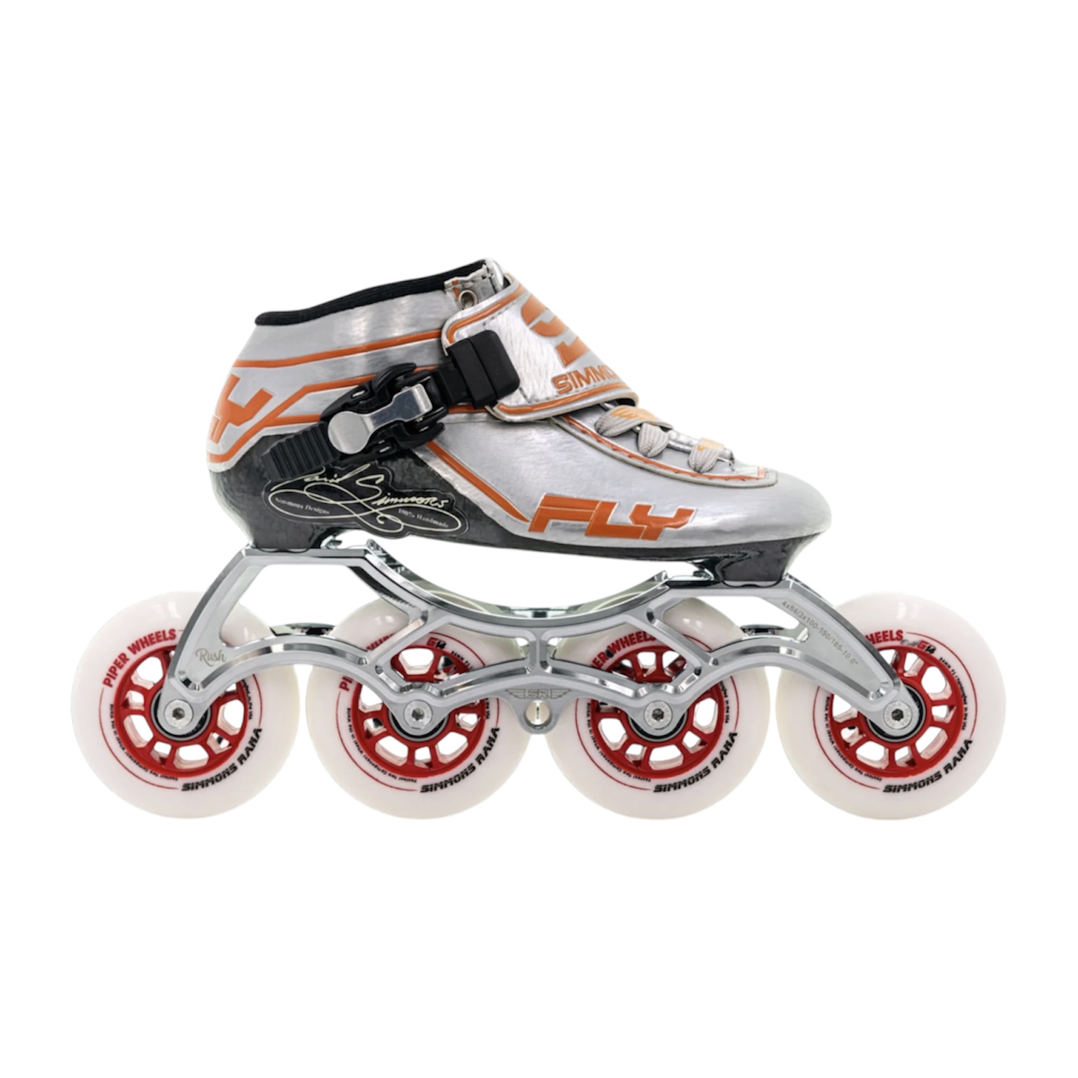 El patín FLY Simmons Rana, diseñado para atletas profesionales y aspirantes a campeones. Cada componente de este paquete ha sido seleccionado a mano y probado para ofrecer precisión, comodidad y adaptabilidad inigualables. Fabricado con fibra de carbono ultraligera, equipado con el chasis RUSH, ruedas G14 de Piper y rodamientos SWISS, para la competición de alto rendimiento.